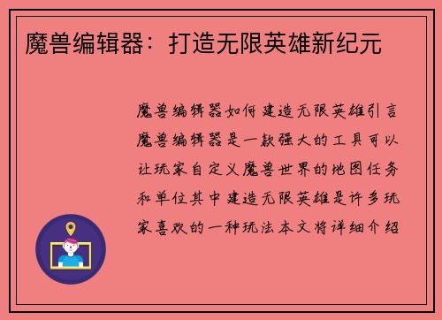 介绍 魔兽世界是一款非常受欢迎的多人在线角色扮演游戏,玩家可以在游戏中与其他玩家互动并完成各种任务。除了游戏自带的地图和任务,许多玩家也喜欢制作自己的地图来增加游戏的乐趣和挑战性。在自制地图中,怪物的掉落物品是一个非常重要的元素,它可以让玩家获得更多的奖励和装备。本文将介绍如何制作一个自制地图,让怪...